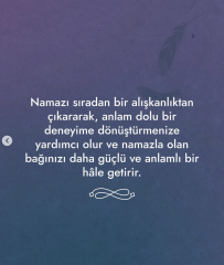 Namazı sıradan bir alışkanlıktan çıkararak, anlam dolu bir deneyime dönüştürmenize yardımcı olur ve namazla olan bağınızı daha güçlü ve anlamlı bir hâle getirir.